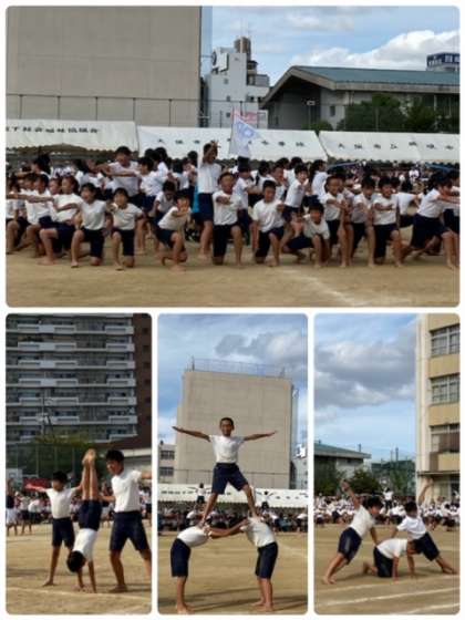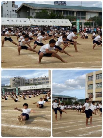 快晴で心地よい秋風の中、元気な小学生たちの競技と演技が見られました。