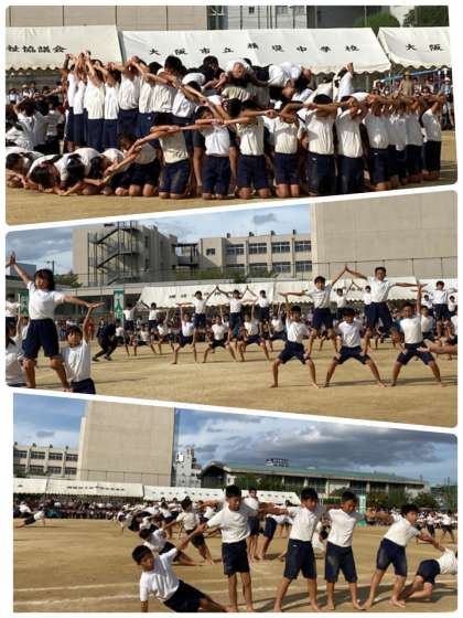 「軌跡〜One step leading to the future〜」は、ダンスと組体操が合わさった演技です。かっこよくもあり、かわいくもあり、6年生たちの堂々とした迫力ある姿に感動しました。