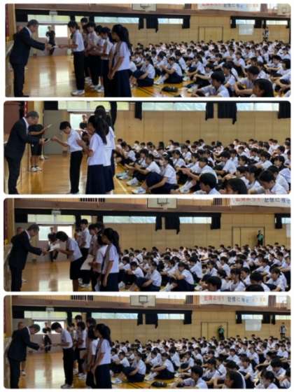 校長先生から代表生徒が認証状を受取りました。学校・学級のために頑張ってくれることを期待しています。