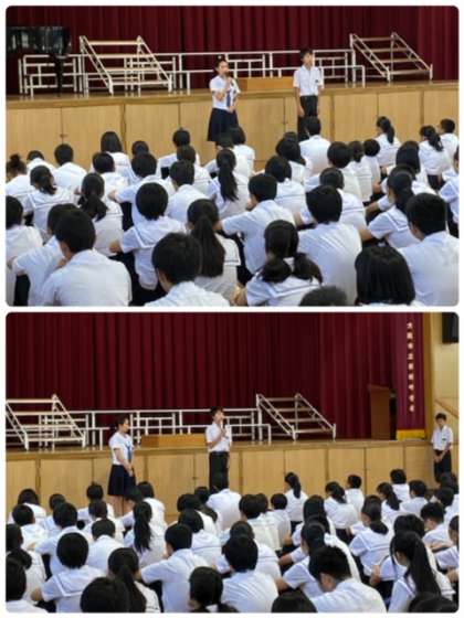 その後、前期生徒会会長からお礼と励ましの言葉があり、後期会長から意気込みの言葉が述べられました。