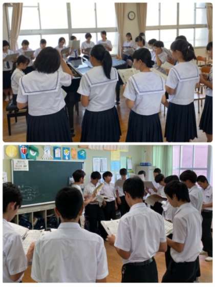 6限目は、全学年でそれぞれの場所に分かれて合唱コンクールに練習を行っています。