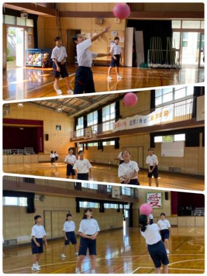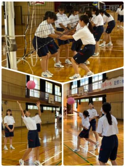 2年生の女子保健体育の授業では、ソフトバレーボールの試合を行っています。