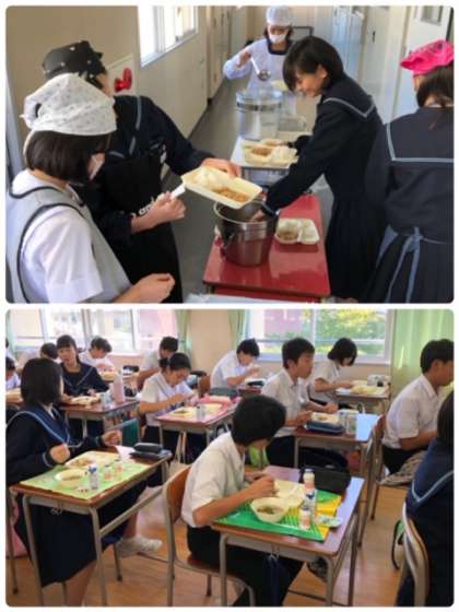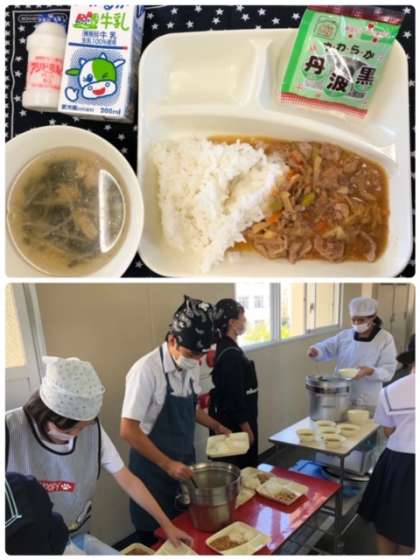 いつも給食係がいい塩梅で盛り付けてくれています。丹羽黒大豆は噛めば噛むほど味のある高級豆です。
