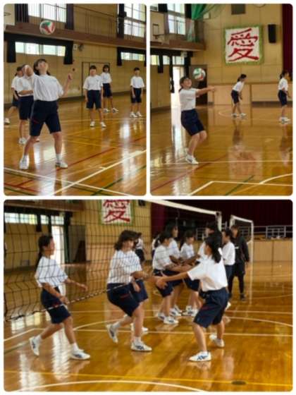 ゲーム形式でバレーボールを楽しく行っています。ワールドカップバレーのいい影響が表れているようです。