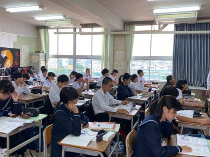 2年生の英語の授業では、デジタル教科書を活用して授業を行っています。