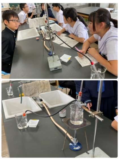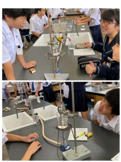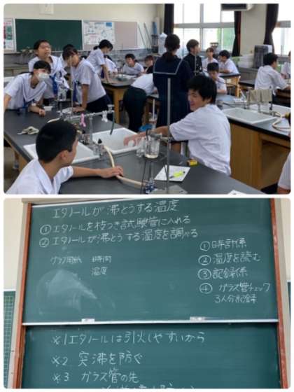 1年生の理科の授業では、エタノールの沸点を調べる実験を行っています。