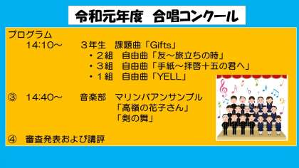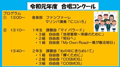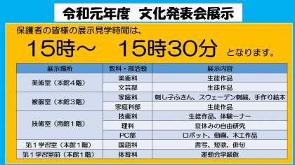 合唱コンクール、文化発表会展示見学のご案内でお知らせいたしましたが、改めてご連絡いたします。