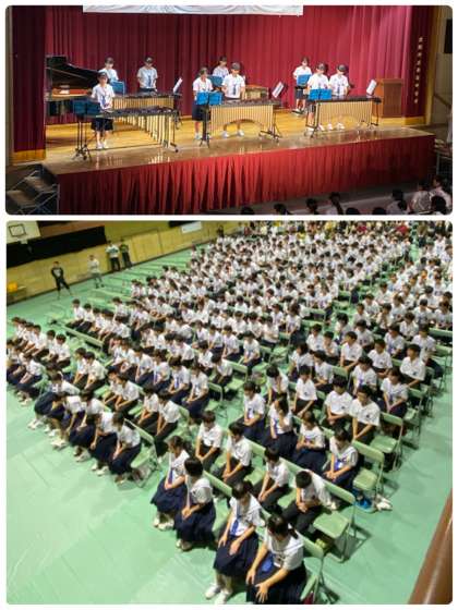 生徒会役員が進行を務め、音楽部のマリンバ演奏で幕を開けました。
