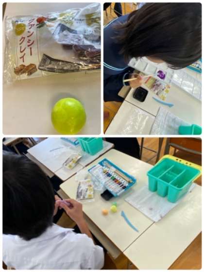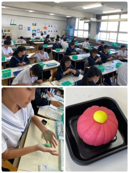 2年生の美術の授業では、紙粘土で和菓子つくりを行っています。