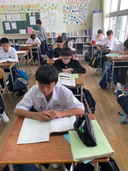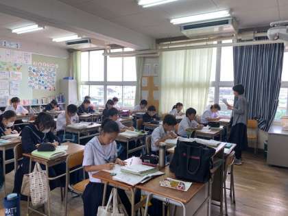 先生は机間指導をして、生徒たちの学習の理解度を把握していきます。つまずいていたり、やる気がなくなっていたり、がんばっていたりする生徒をそれぞれの声掛けで指導しています。