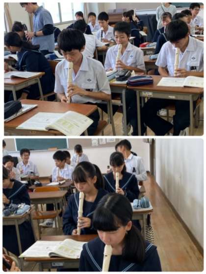 2年生の音楽の授業では、アルトリコーダーの学習を行っています。