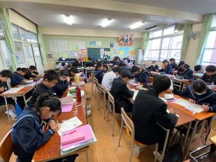 知識や考え方を一斉に指導するような授業だけでなく、子ども同士が教え合い学び合う協働的な学習を積極的に取り入れています。