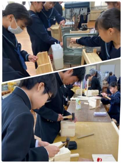1年生の技術の授業では、本立づくりを行っています。