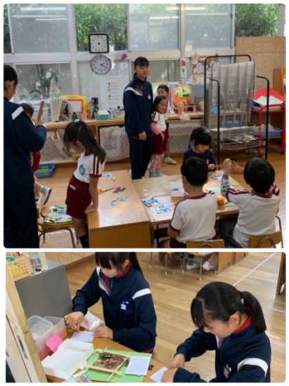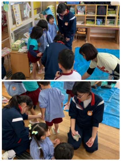 すぐに生徒たちになついてくれる園児たちの姿がたくさんあります。