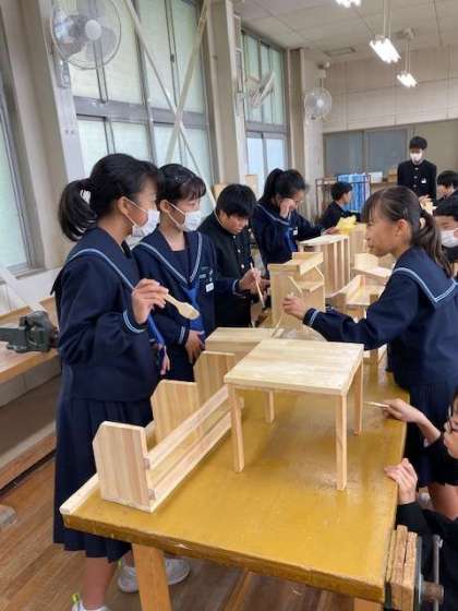 1年生の技術の授業では、本立つくりの仕上げを行っています。