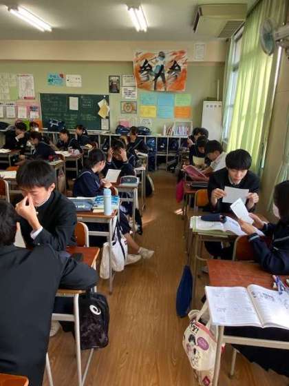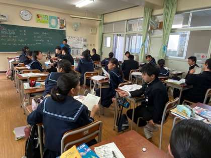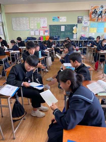3年生の英語の授業では、ペアワークで単語の習得を行っています。