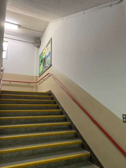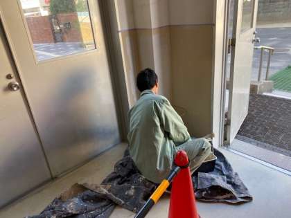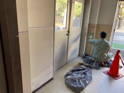 管理作業員さんが本館1階の壁などを、きれいに塗装してくれています。