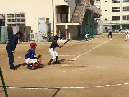 守備やバッティングで、他校の選抜メンバーとともに練習しています。