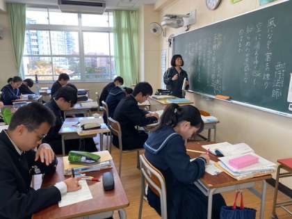 国語では、言葉がもつ価値を認識するとともに、言語感覚を豊かにし、我が国の言語文化に関わり、国語を尊重してその能力の向上を図る態度を養うことを目標としています。