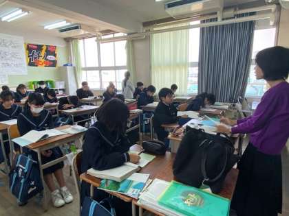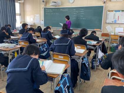英語の授業づくりのコンセプトとして、授業全体を英語で行うことを基本とし、日本語の使用が効果的な部分以外は、英語による意味のある豊富なインプット、インタラクションを確保しています。