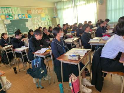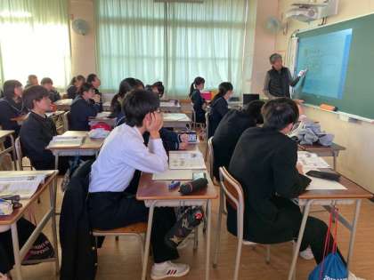 「動物を育てる技術」のウシの飼育についてをプロジェクタを活用して学んでいます。
