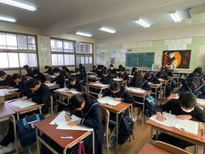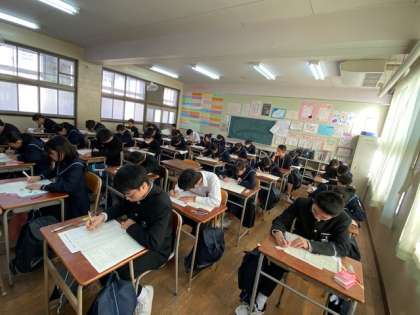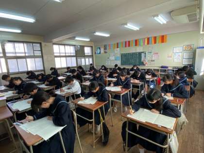 本日、2学期期末テスト2日目です。1限目は、数学のテストを行っています。