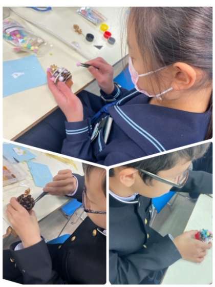 松ぼっくりミニツリーや毛糸玉リースを手作りして、かわいい仕上がりに満足しています!来週水曜日まで毎日行っていますので、興味のある人は是非参加してみましょう!