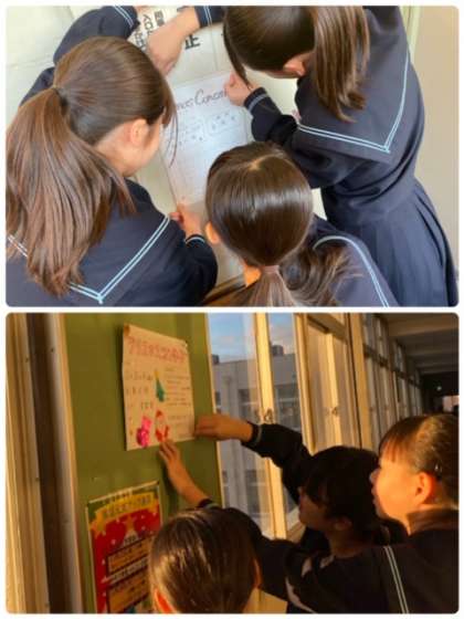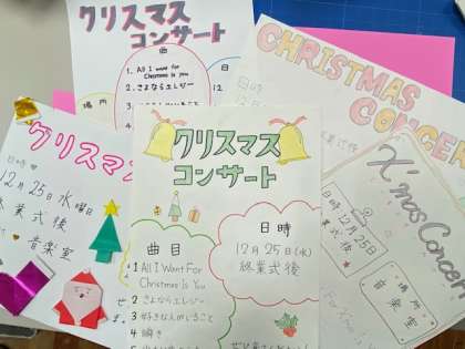 音楽部のみんなが、クリスマスコンサートのお知らせポスターを廊下などに掲示しています。