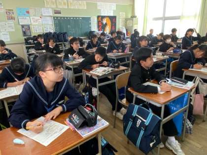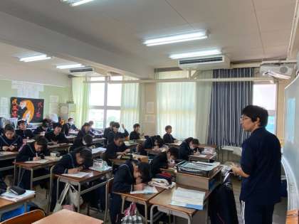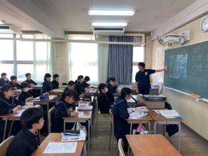 江戸時代後期の文化について、プロジェクタに絵画などを投影しながら学んでいます。歴史的に有名な絵画の作者を知ったり、作者から代表作品を知ったりしています。