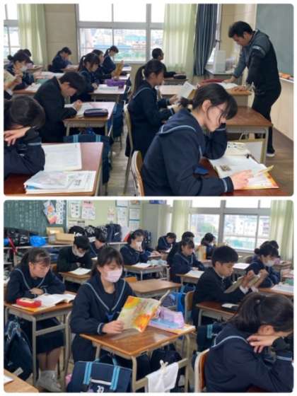 「天使の舞い降りた朝」「小さなこと」「最も悲しむべきことは、病めることでも貧しいことでもなく」の教材に取り組んでいます。