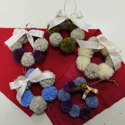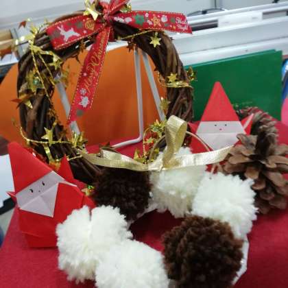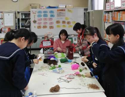 最終日は、先生方も参加してくれています。先生たちは家庭科部のみんなの手ほどきを受けて、クリスマス飾りを作りました。