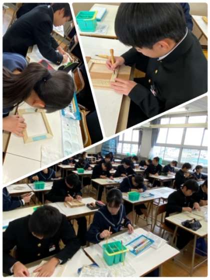 3年生の美術の授業では、木彫プレートの製作を行っています。