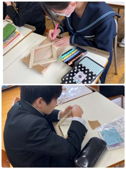 美術では、表現及び鑑賞の幅広い活動を通して造形的な見方・考え方を働かせ、生活や社会の中の美術や美術文化と豊かにかかわる資質・能力を育成することを目標としています。
