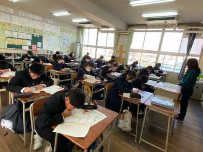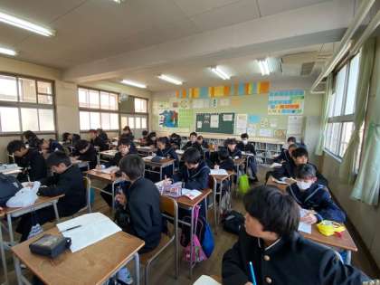 1年生が、職業体験セミナーから帰校しました。少し疲れた表情の生徒もいますが、全体的にはとても充実した体験ができたようです。