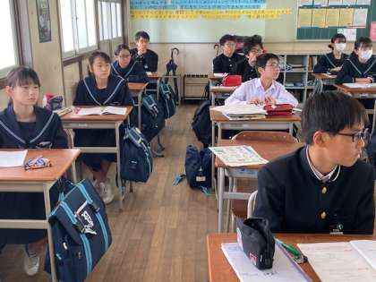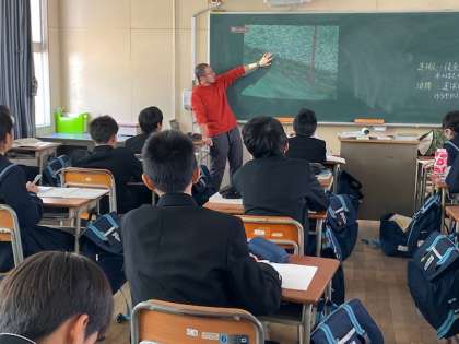 川の流れる水によって運搬されたり、堆積されたりする様子を動画で見ています。視覚教材をうまく活用して生徒の学びが深まるよう工夫しています。