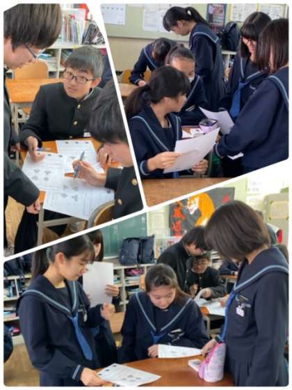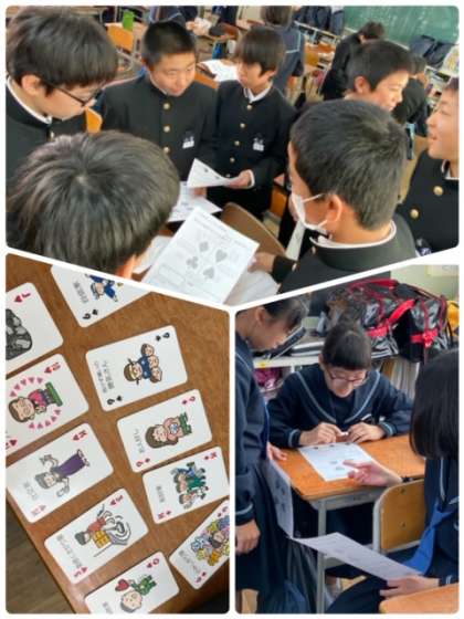 ヒューマンキャンパス高等学校から講師の方に来ていただいています。SPトランプを使って性格分析を行っています。クラスの雰囲気のよさが表れています。
