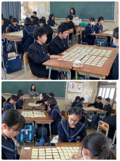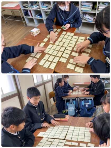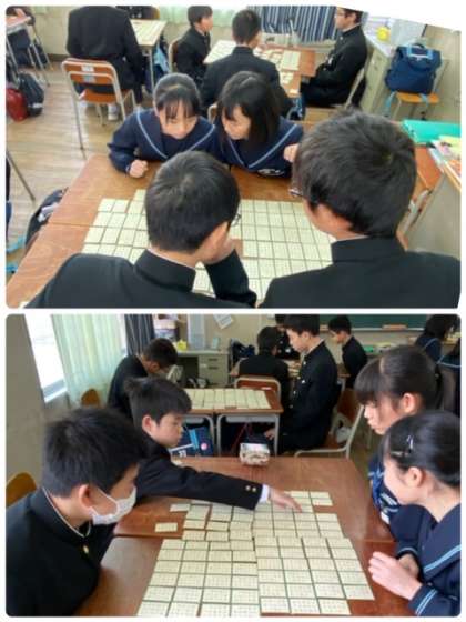 小学校でも覚える機会があったようで、上の句をよんですぐに手が伸びる生徒もいます。3学期に学年行事を企画しているので、たくさん覚えましょう!
