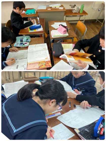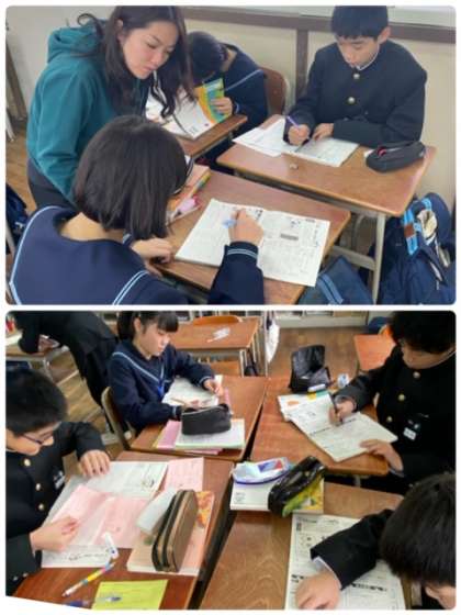 文法の単元を、生徒の習熟の程度や学び方に応じて、より細かく指導・支援ができるようにしています。一斉授業と比べて、個に応じた指導が行えることで、生徒たちの基礎的・基本的学力の定着を図っています。