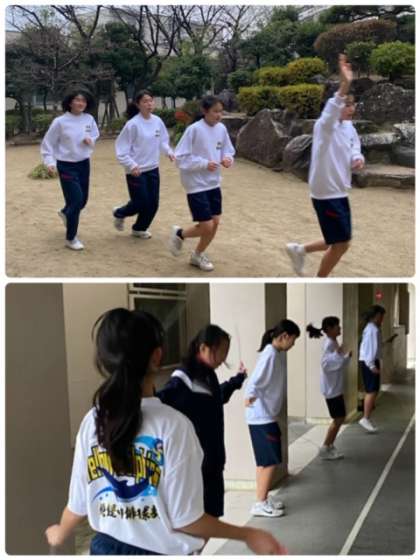 インターバル走、縄跳び、ラダー、対人パスを時間を区切ってローテしながら行っています。お揃いのTシャツ、トレーナーで、気持ちもひとつに頑張っています。