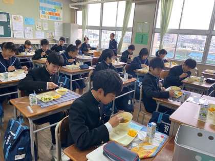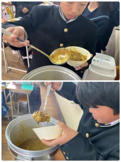 冬野菜カレーの具材には、レンコンや大根が入っています。おかわりをする生徒たちの列ができるほど人気です。今日も美味しくいただきました!