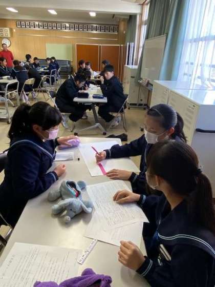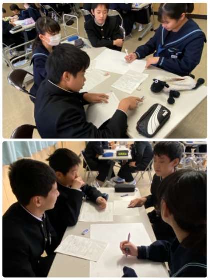 2年生の理科の授業では、課題の考察・発表準備をしています。