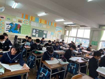 1年生の数学の授業では、冬休みの課題の説明を行っています。