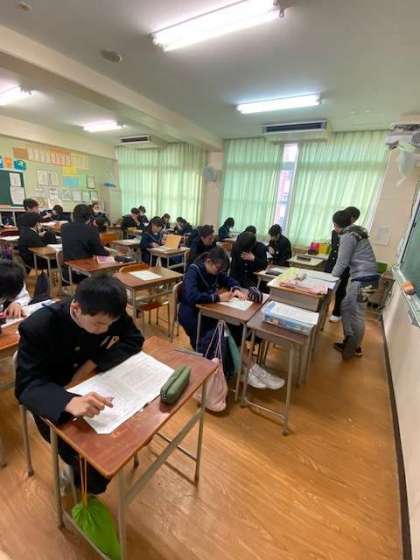 3年生は、授業を大切に学習進度を考慮して、総合的な学習の時間に実力テストの返却を行っています。