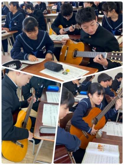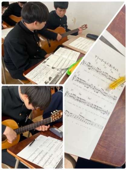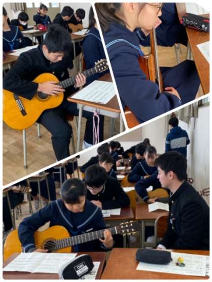 3年生の音楽の授業では、ギターに取り組んでいます。