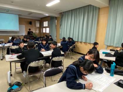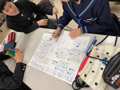 習得した知識を使って、自分の考えを形成して表現したり想像したりする学びをつけさせるねらいです。全ての生徒が能動的に学習に取り組むよう工夫しています。