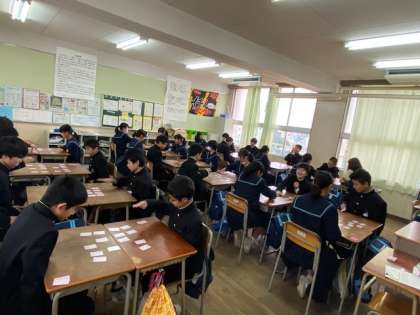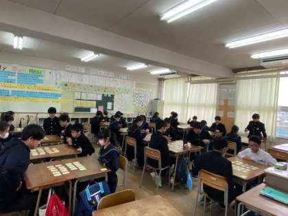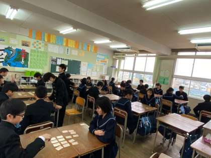 上の句を聴いて取り札がとれる生徒がどんどん増えています。どのクラスも工夫して頑張っています。