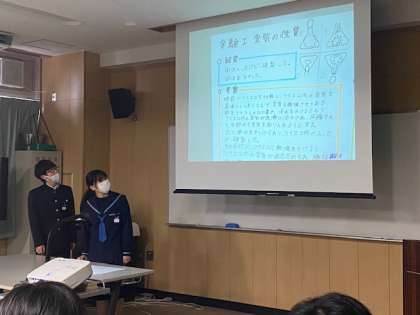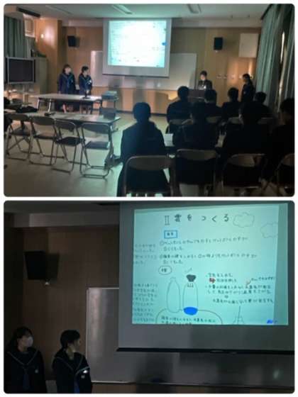 2年生の理科の授業では、実験と考察のプレゼンテーションを行っています。