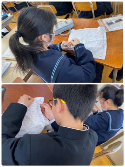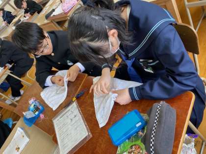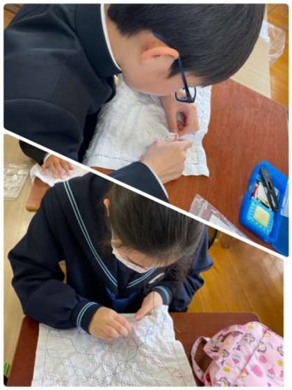 1年生の家庭科の授業では、刺し子の裁縫を行っています。