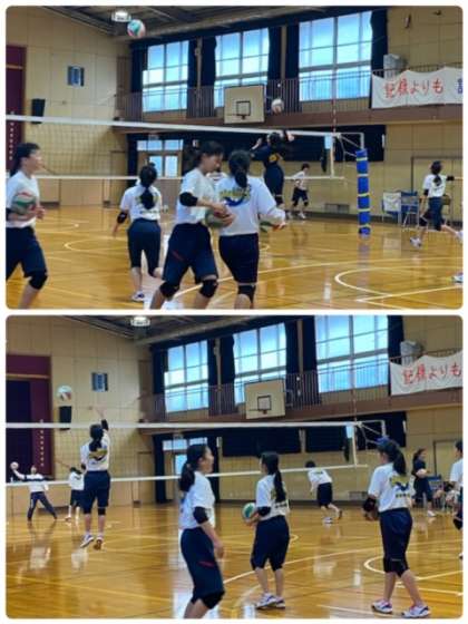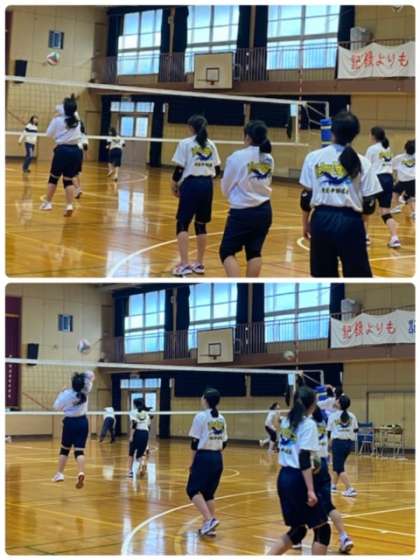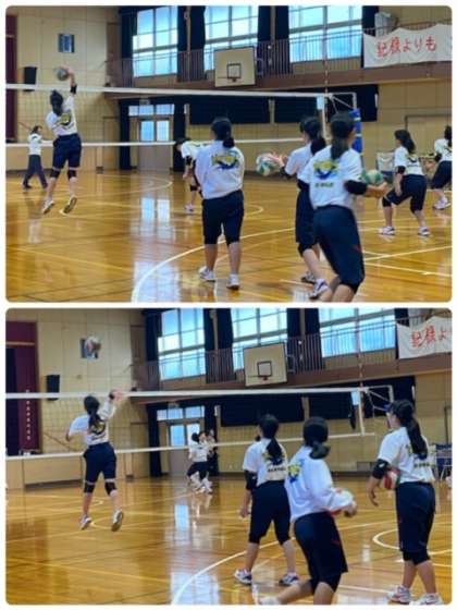 どんなトスでも攻撃できるように、スパイク練習を行っています。今後、いろんな大会が続くのでバレー部らしい姿を見せてください。