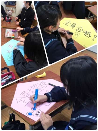 3年生は、合格祈願の巨大絵馬を作成しています。